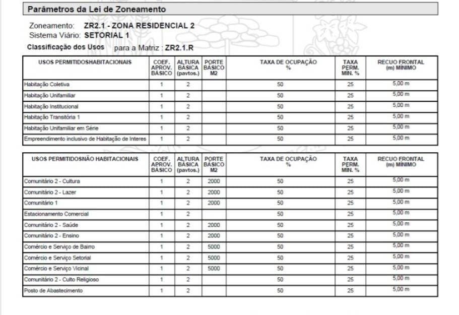 Zoneamento: ZR2.1 – Zona Residencial 2