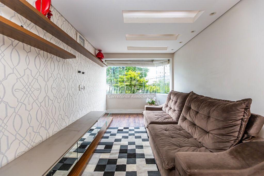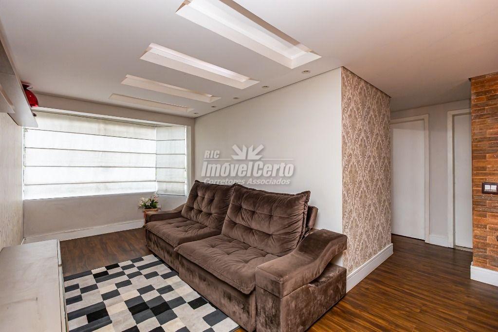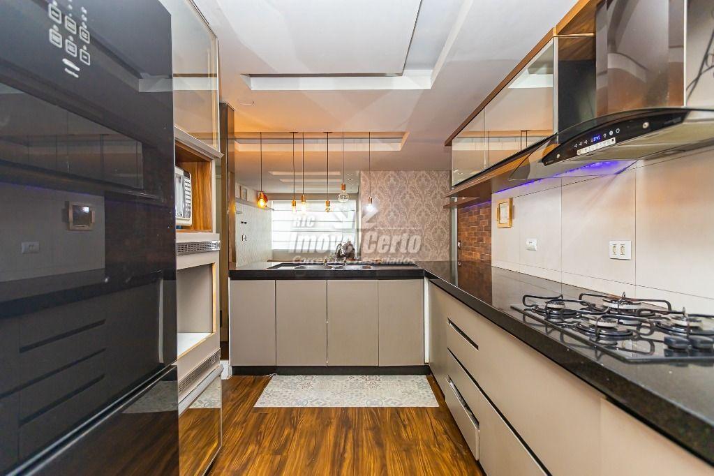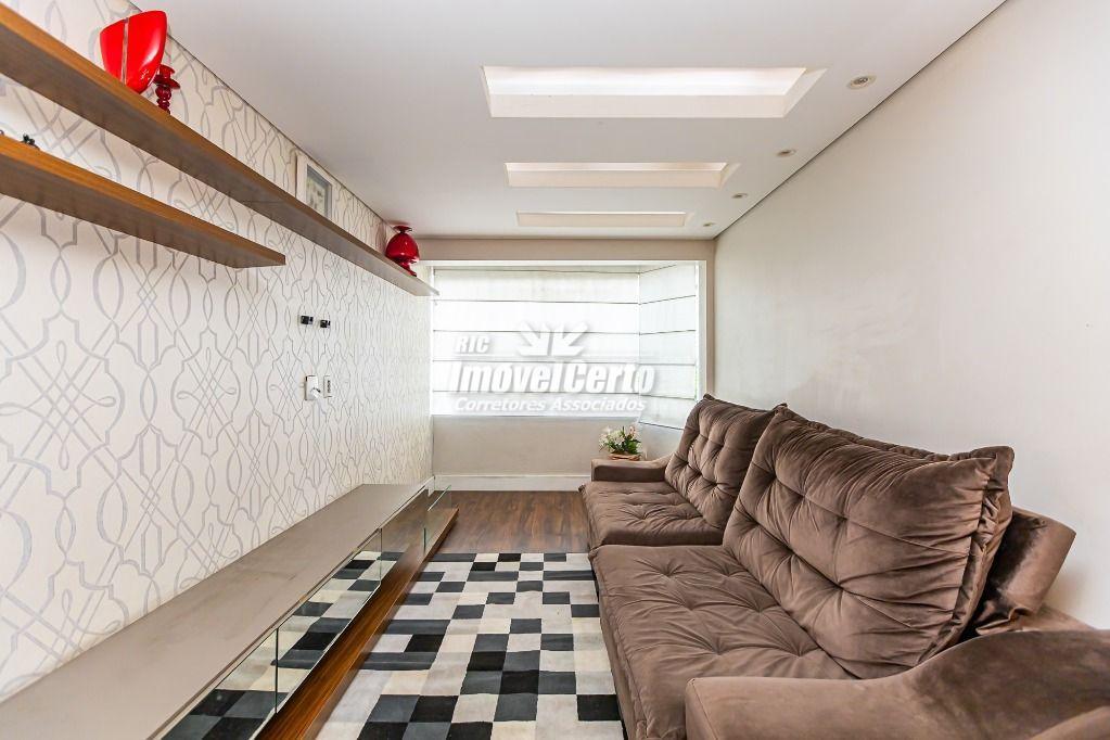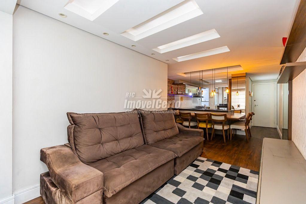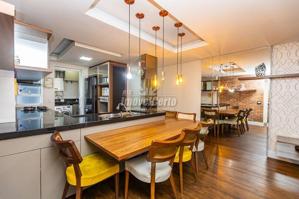 Living: Sala integrada à cozinha americana, criando um ambiente moderno e amplo para receber amigos e família.