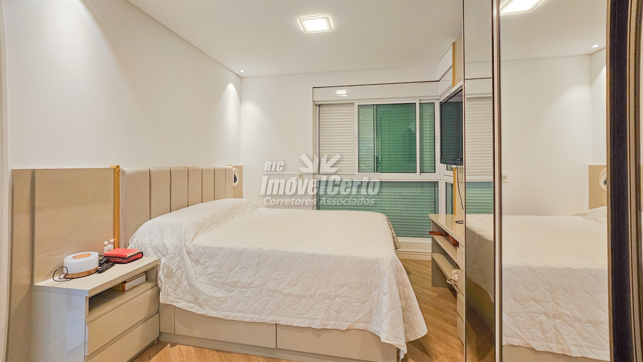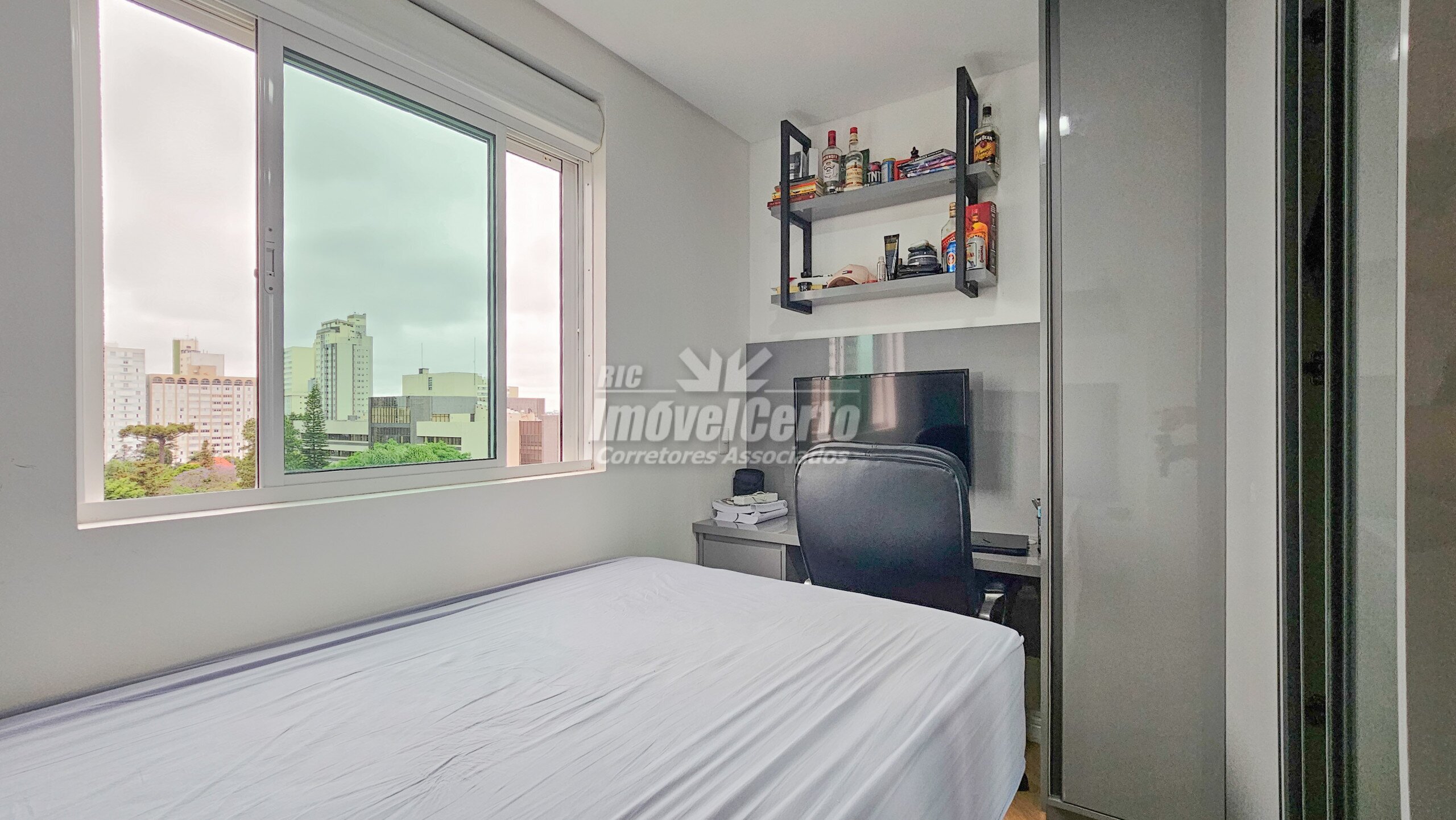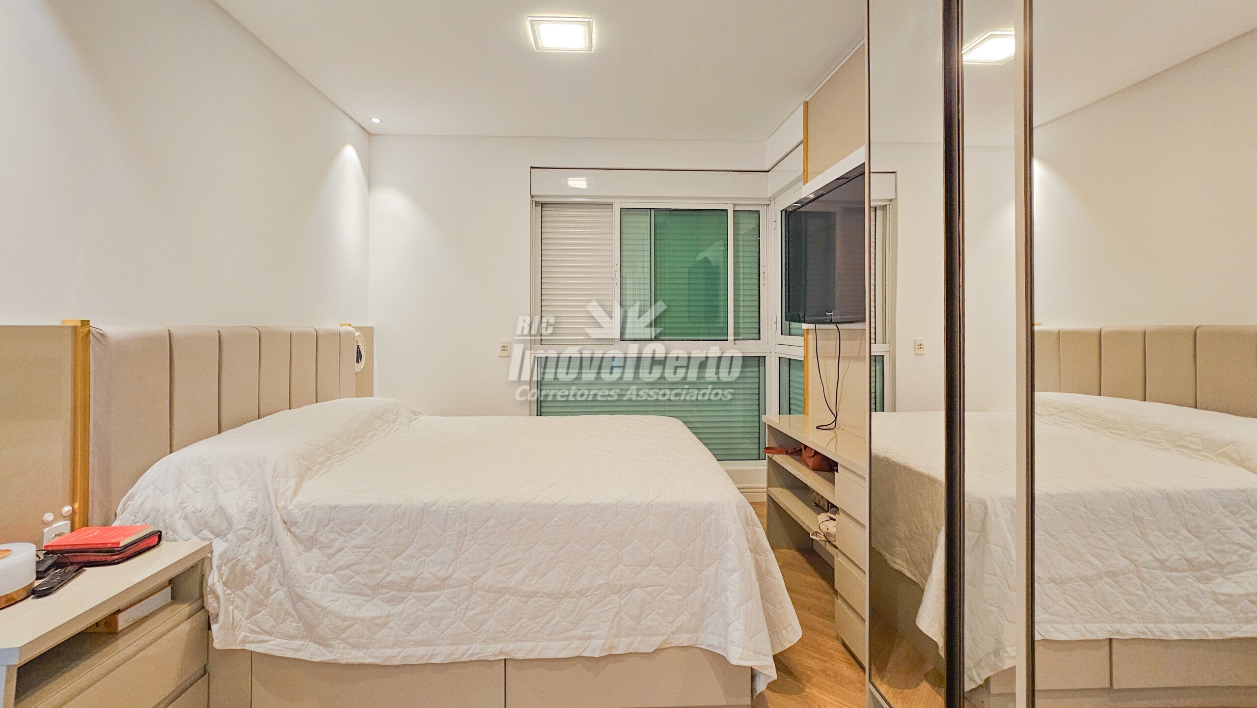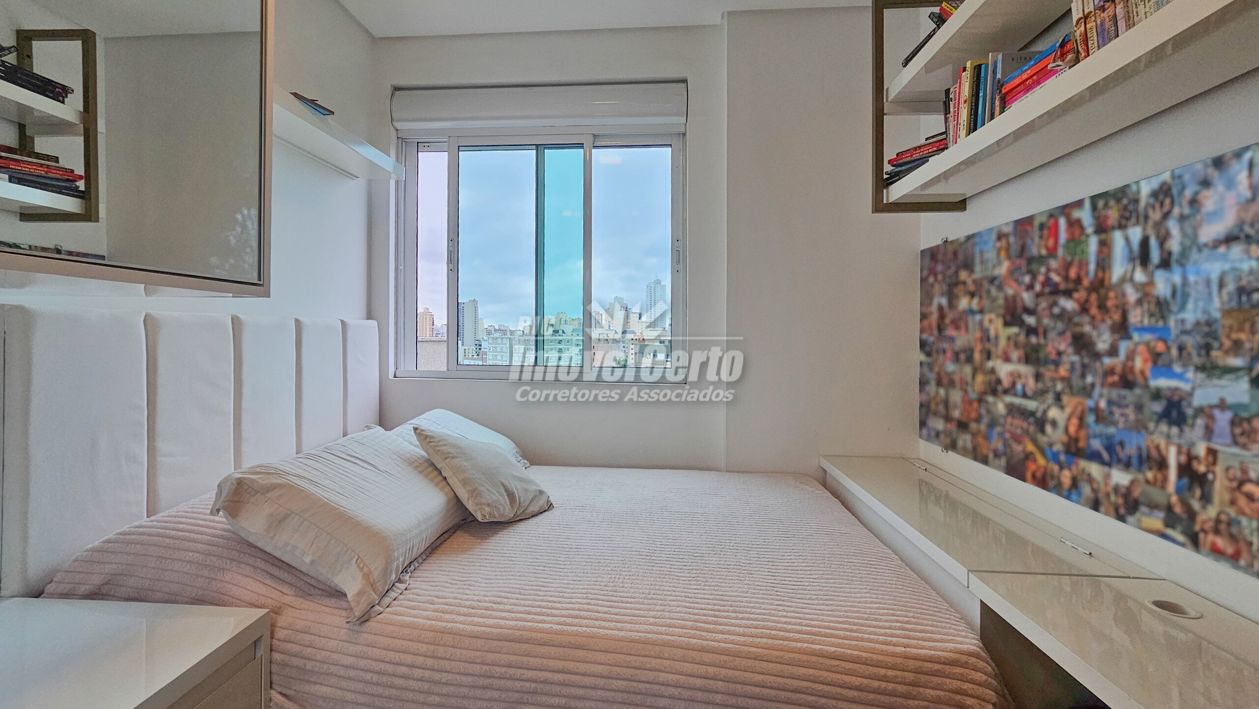 Imóvel semi-mobiliado com móveis fixos permanecendo após a venda. Face oeste, recebendo sol da tarde na varanda e na suíte.