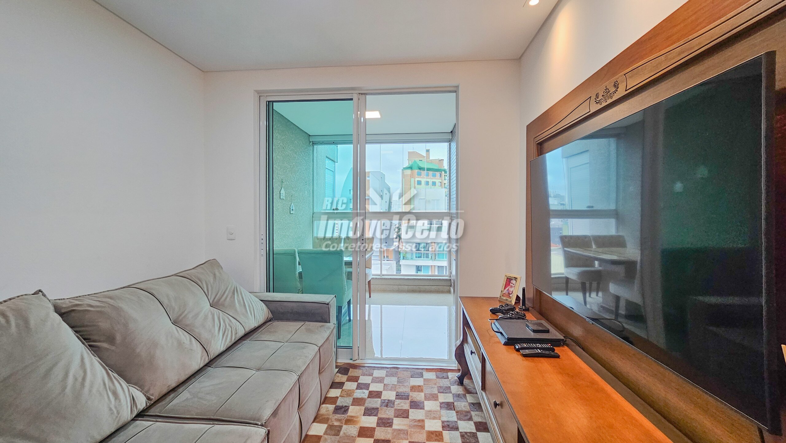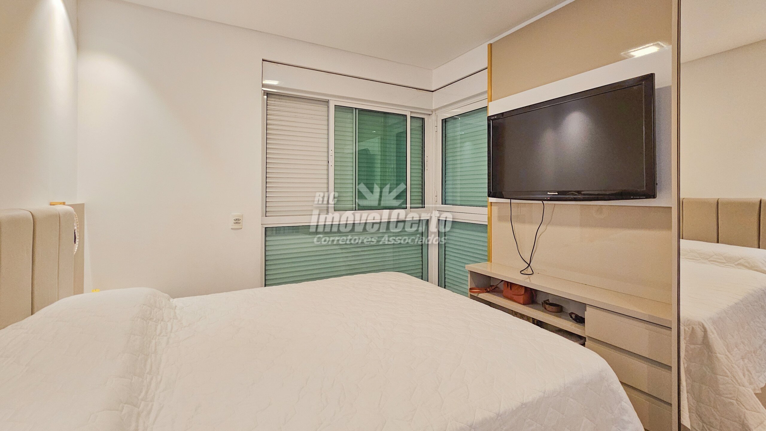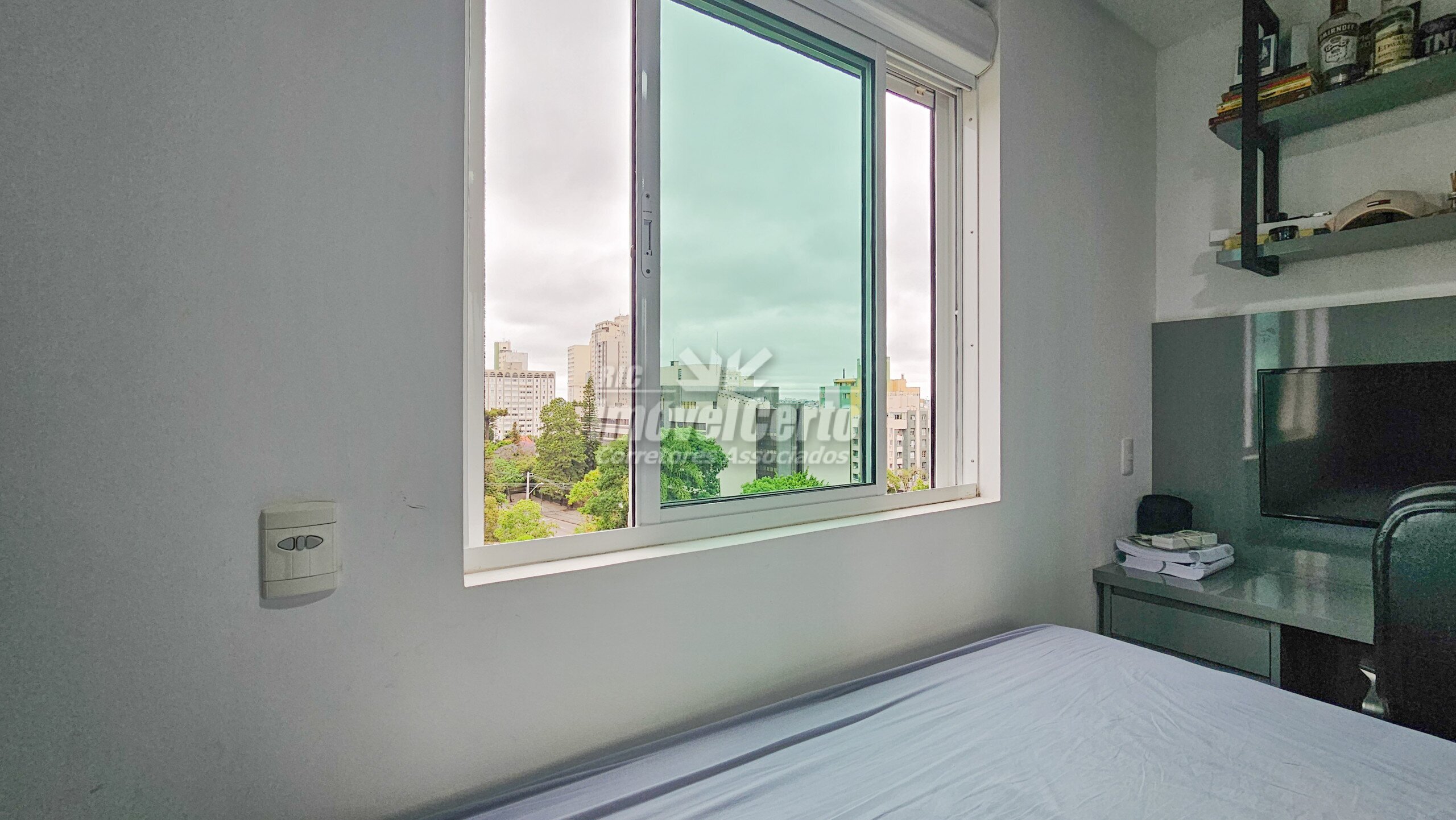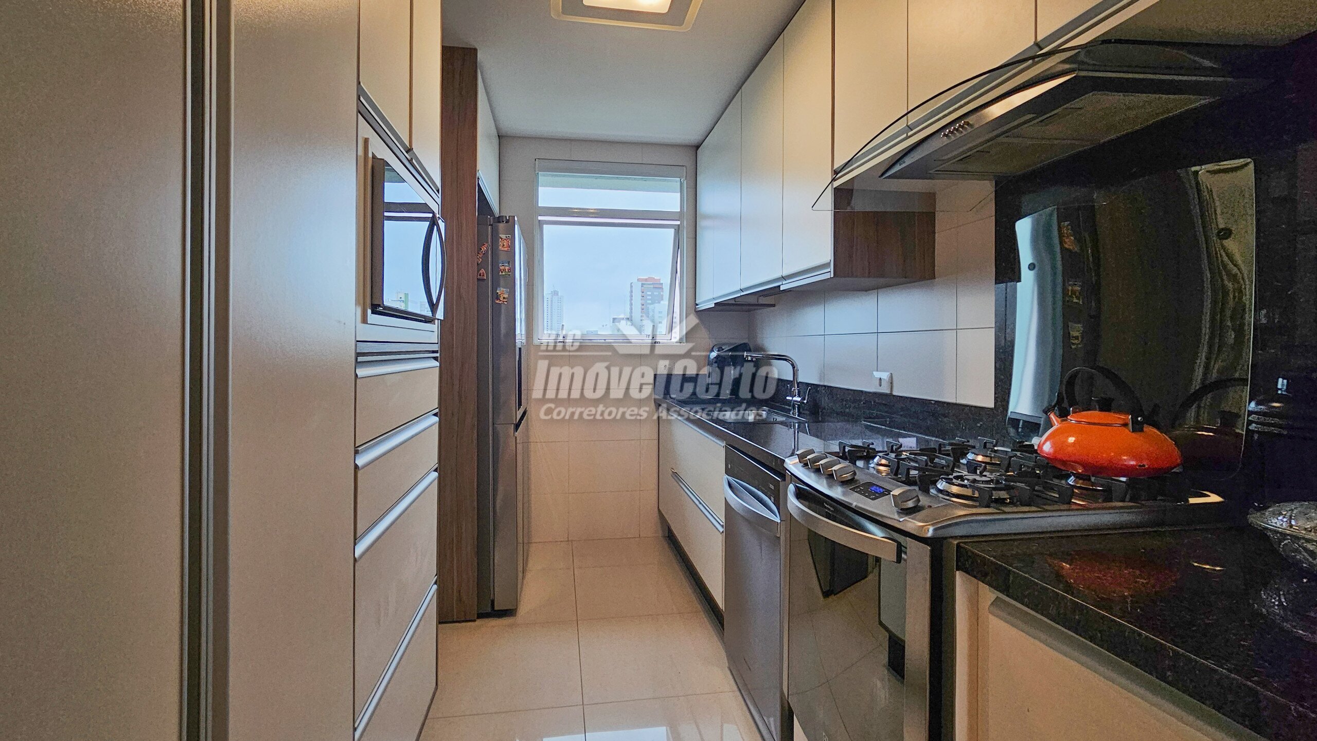 Imóvel semi-mobiliado com móveis fixos permanecendo após a venda. Face oeste, recebendo sol da tarde na varanda e na suíte.