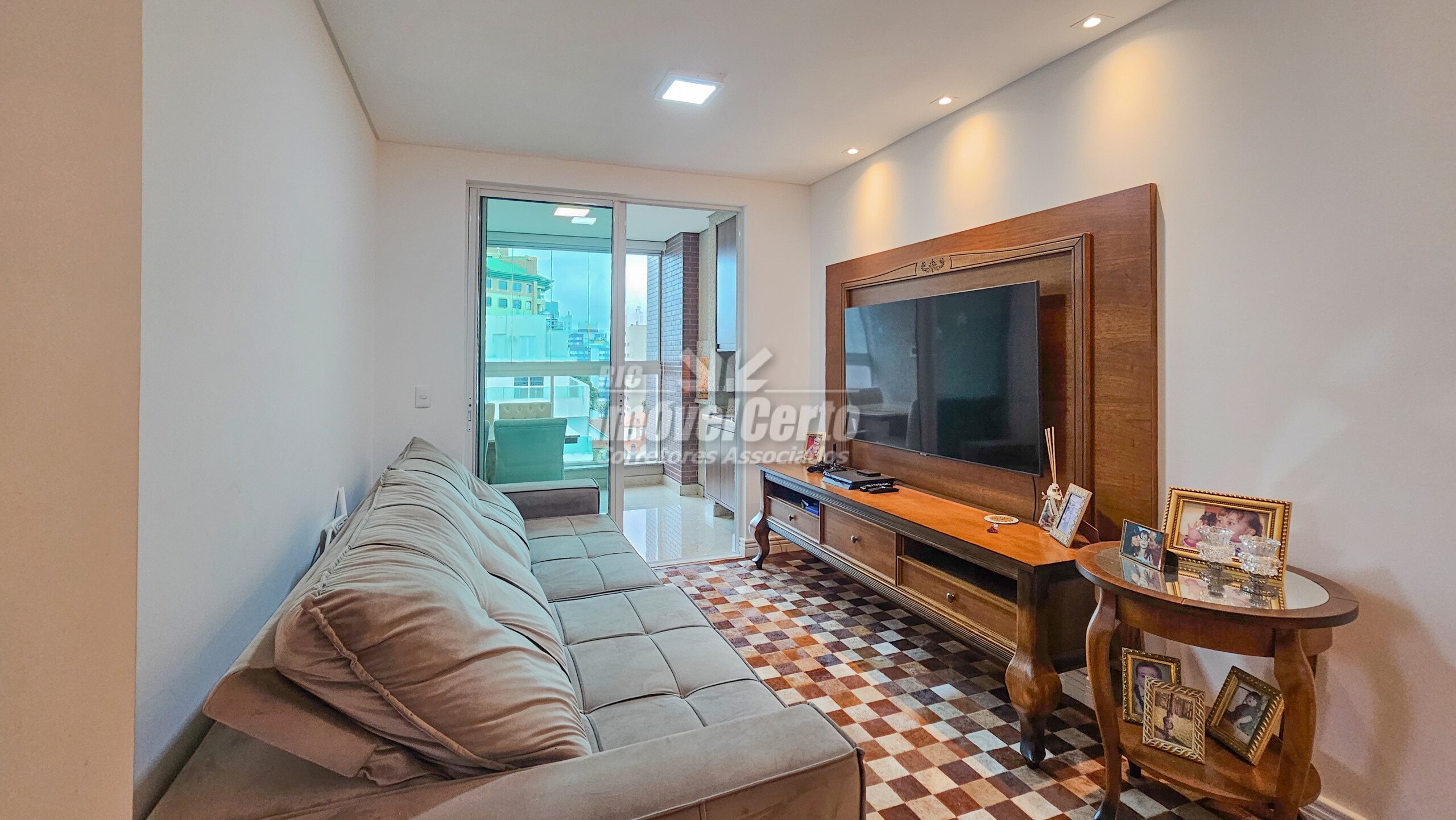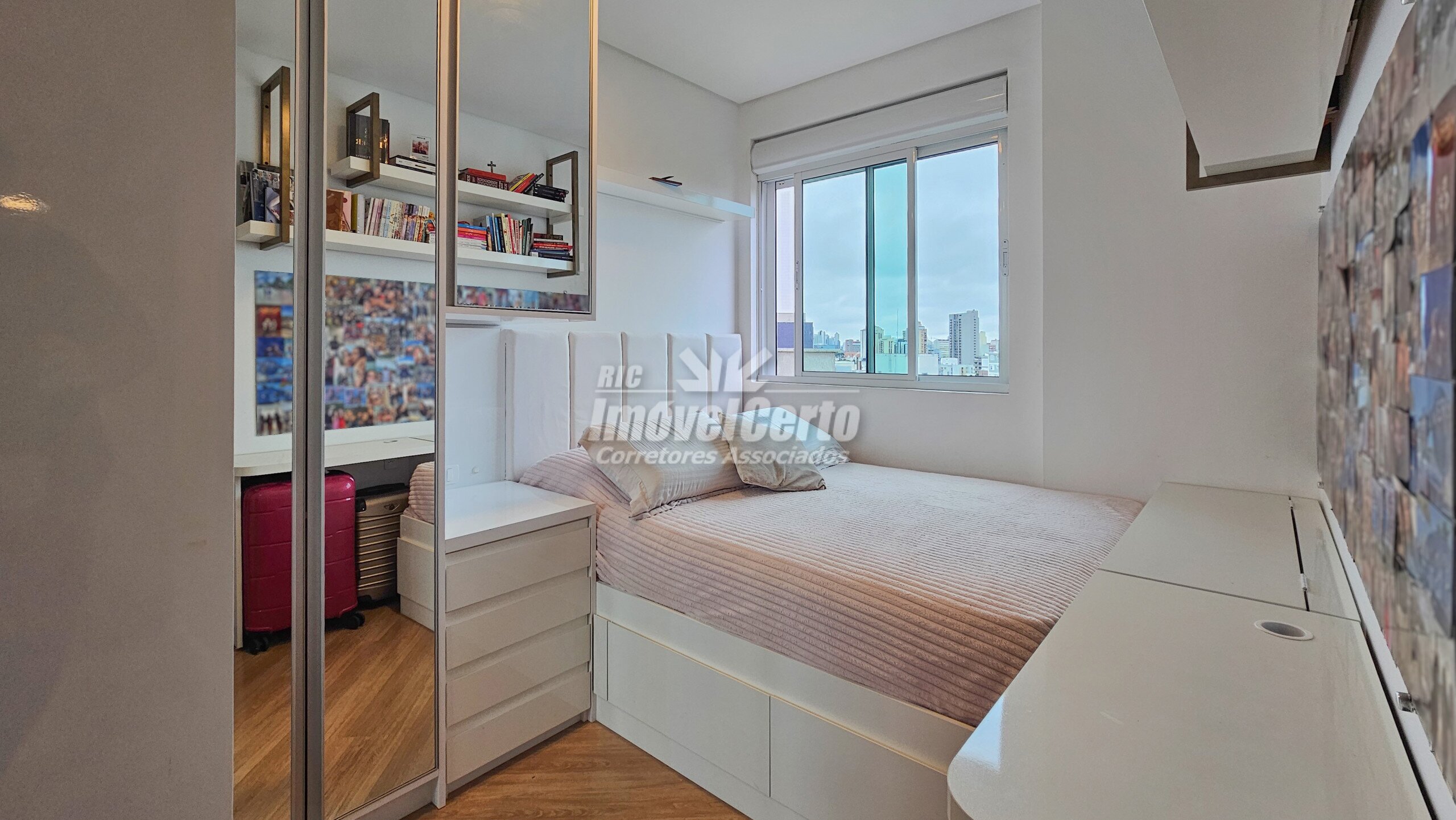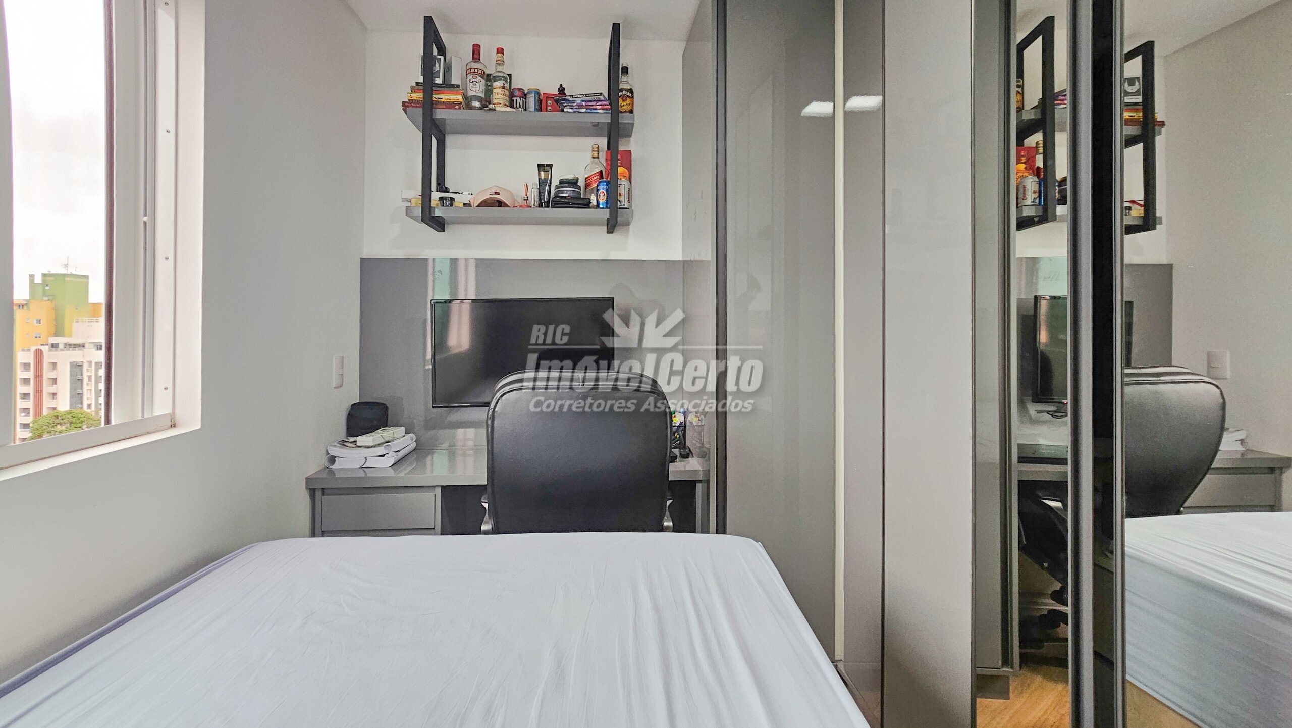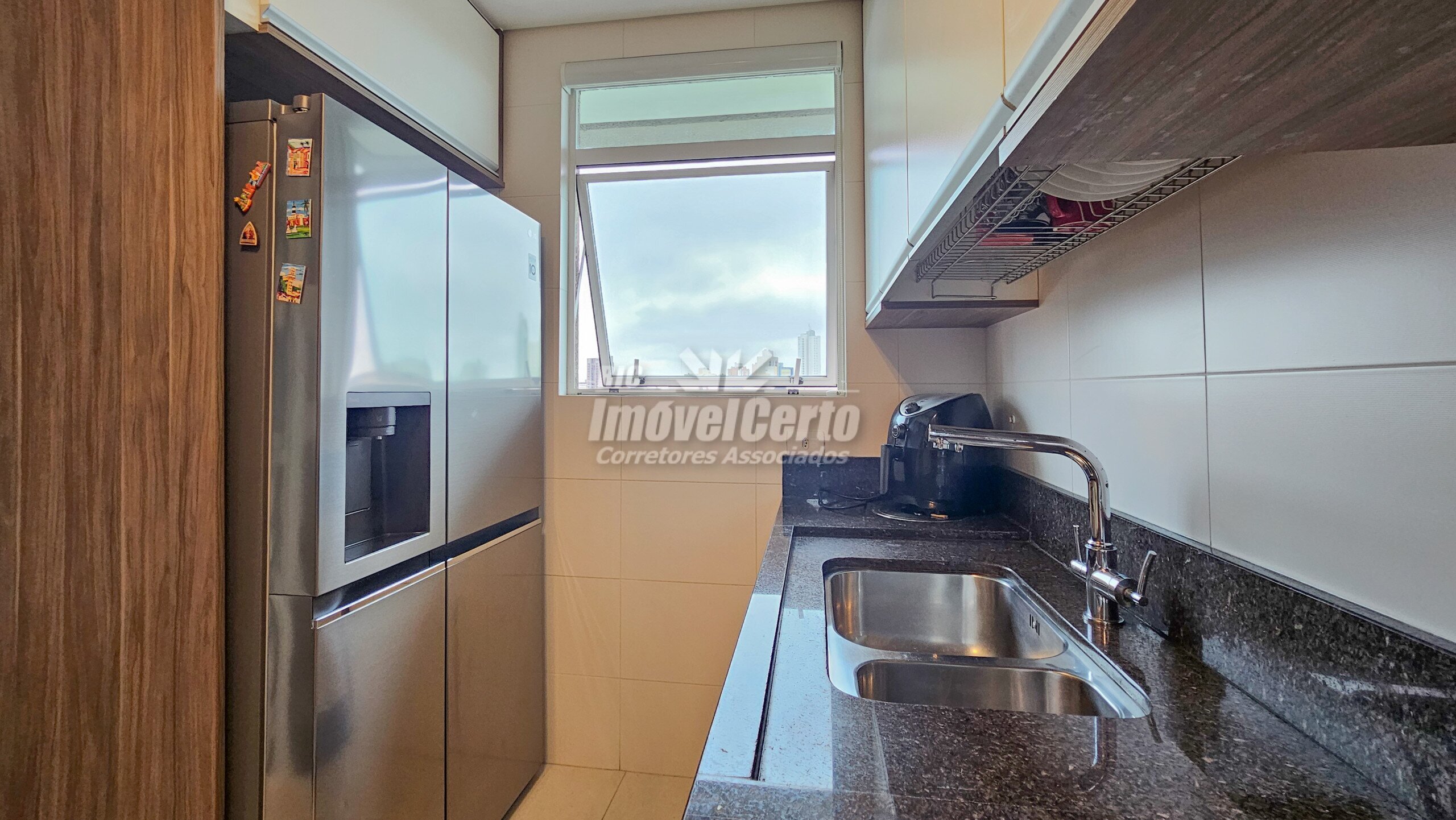 Imóvel semi-mobiliado com móveis fixos permanecendo após a venda. Face oeste, recebendo sol da tarde na varanda e na suíte.