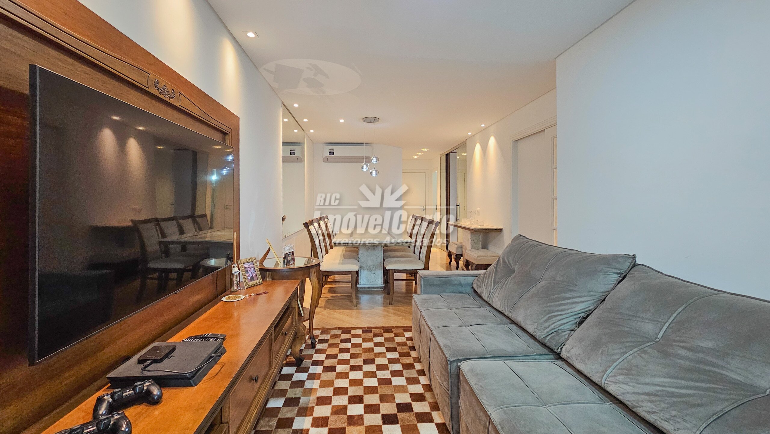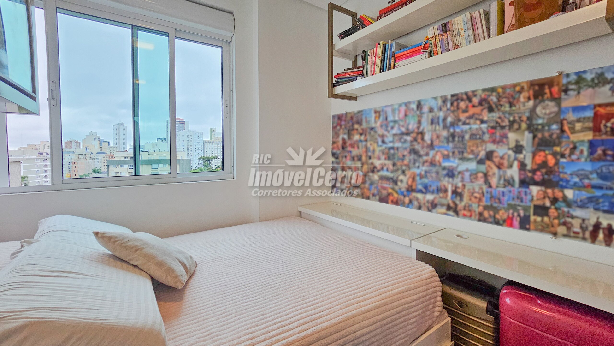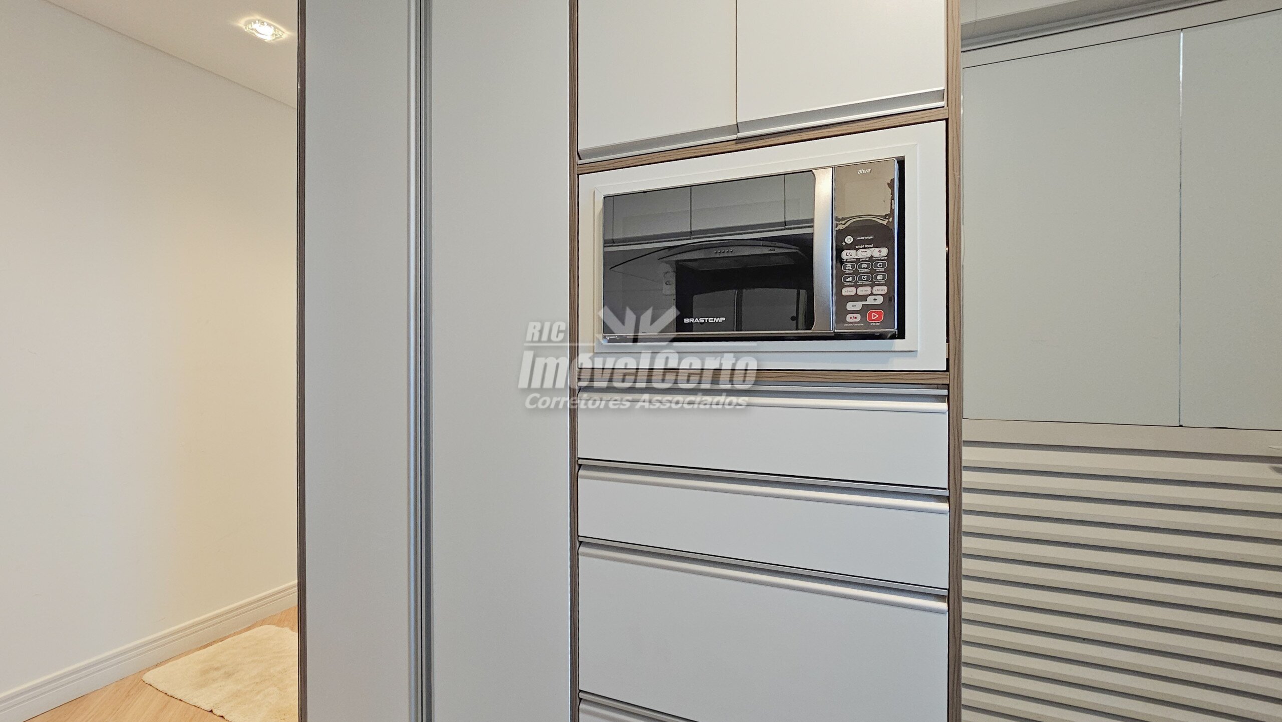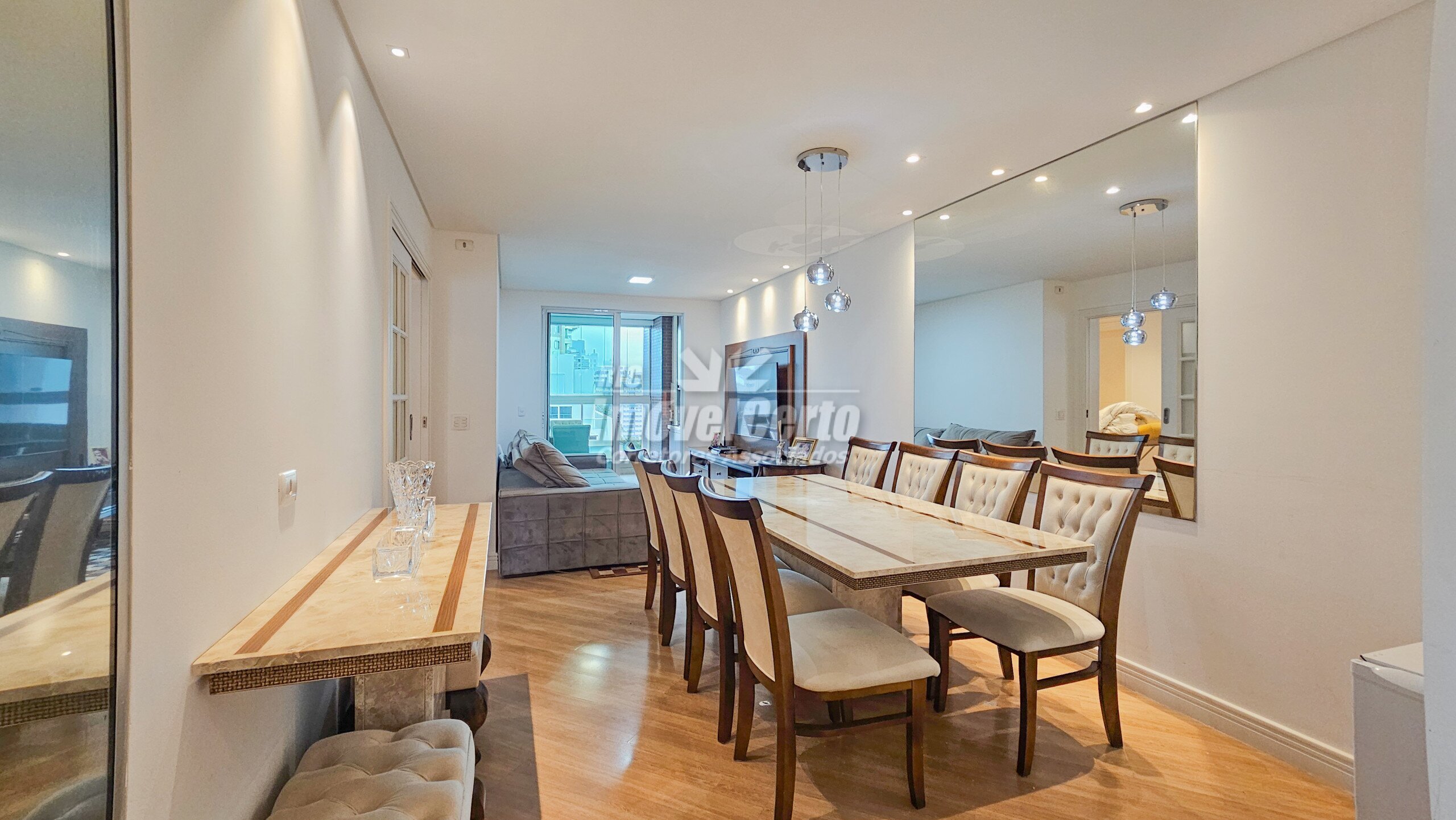 Imóvel semi-mobiliado com móveis fixos permanecendo após a venda. Face oeste, recebendo sol da tarde na varanda e na suíte.