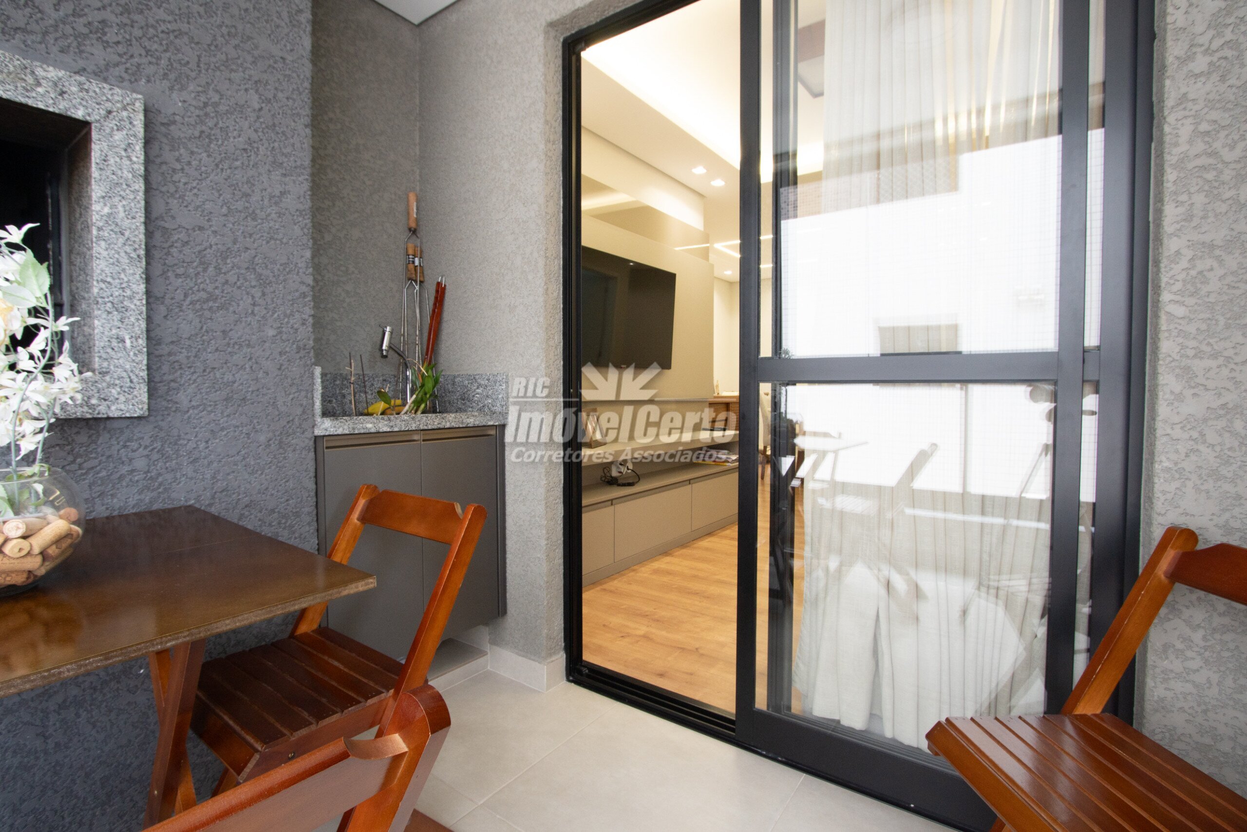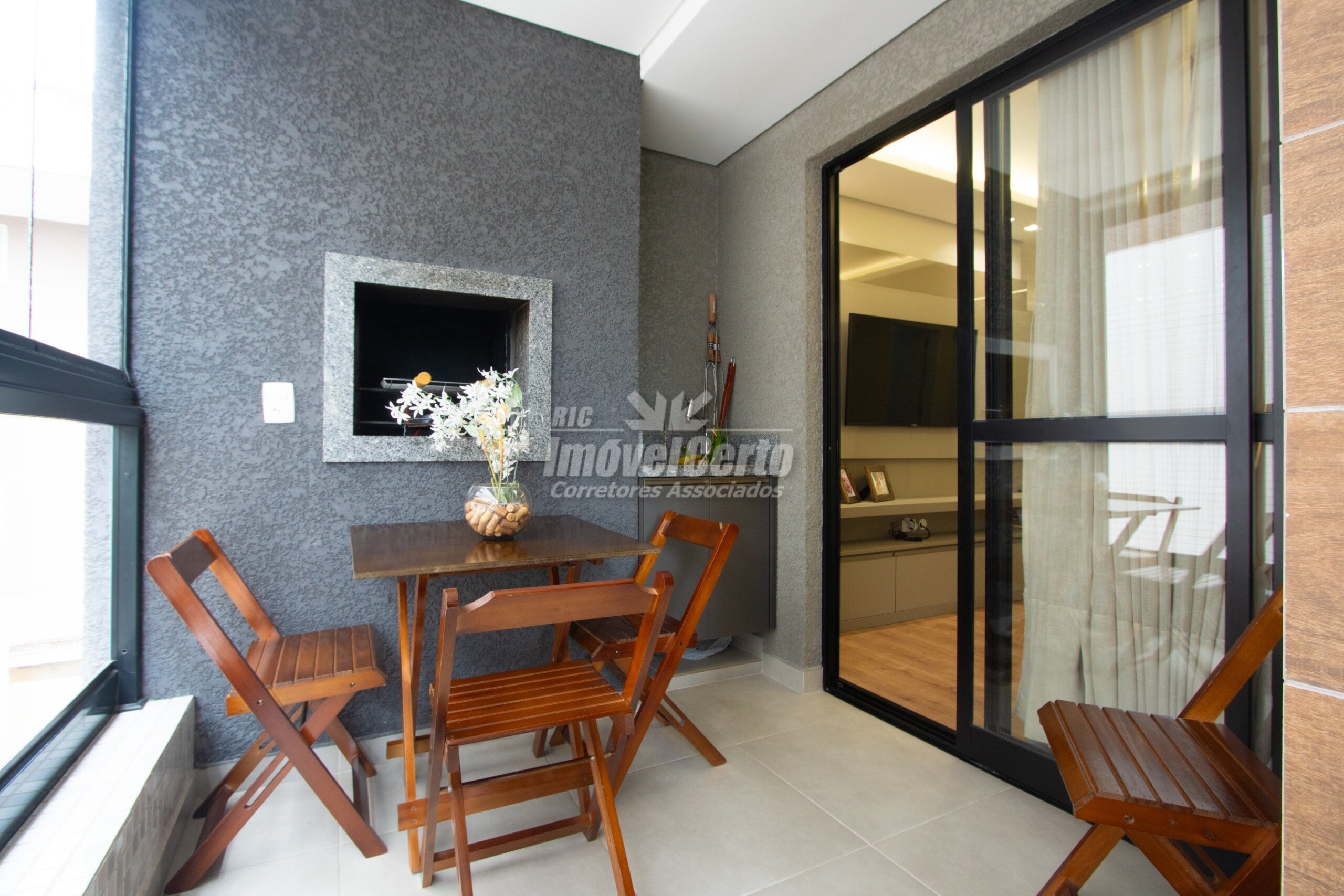 - Living integrado com sacada espaçosa e churrasqueira a carvão
