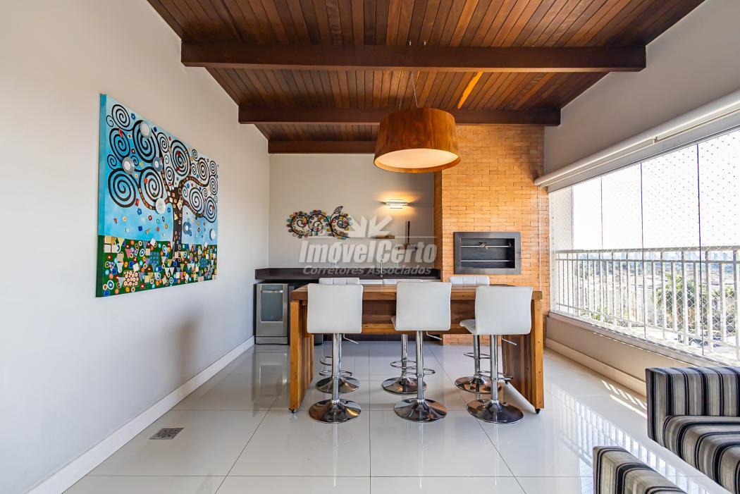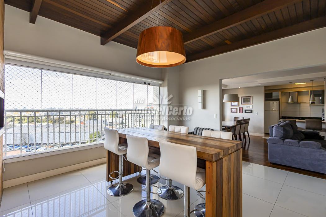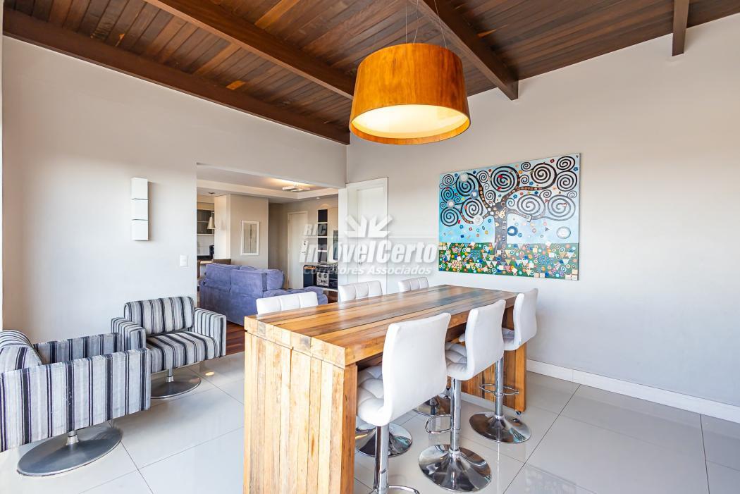 APARTAMENTO:- Cobertura linear (tudo em um pavimento);- 3 Dormitórios, sendo 1 suíte;- Suíte com closet;- Banheiro social e lavabo;- Sala para 2 ambientes;- Varanda gourmet ampla e coberta, com fechamento em Reiki;- Churrasqueira à carvão;- Cozinha semi integrada;- Área de serviço;- 2 Vagas de garagem (vagas paralelas e cobertas).