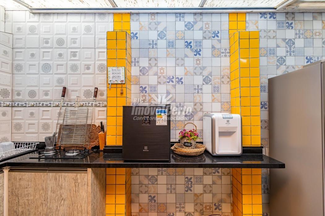 PISO TÉRREO: SALA PARA DOIS AMBIENTES; SALA ESTAR COM ARMÁRIOS; LAVABO; COZINHA COM ARMÁRIOS INTEGRADA COM SALA DE JANTAR, ESPAÇO PARA CHURRASCO E ÁREA DE SERVIÇO COM ARMÁRIOS, NA ÁREA DE CHURRASCO, COBERTURA DE POLICARBONATO RETRÁTIL.