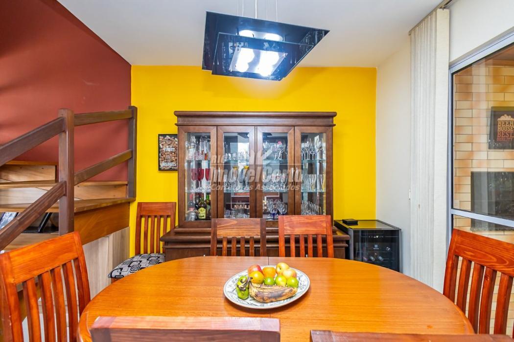 PISO SUPERIOR: 3 DORMITÓRIOS, SENDO 1 SUÍTE COM SACADA E ARMÁRIOS, BANHEIRO DA SUÍTE E SOCIAL COM BOX E ARMÁRIOS, UM DOS QUARTOS DE SOLTEIRO TAMBÉM COM ARMÁRIO.
