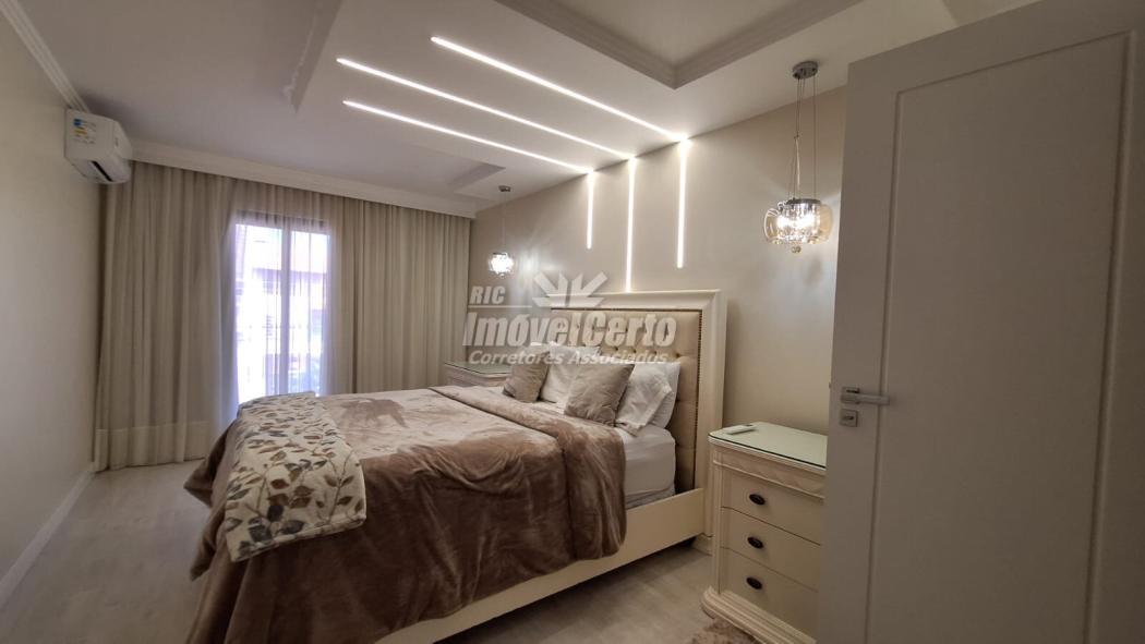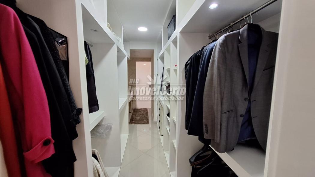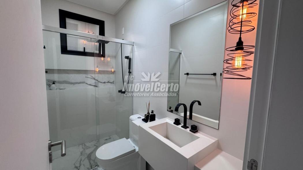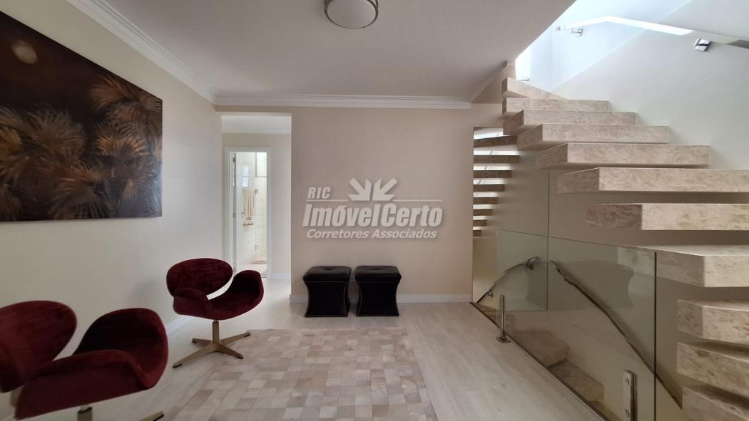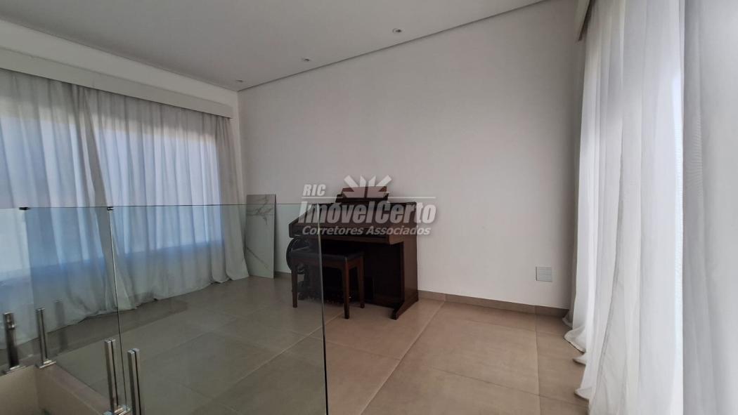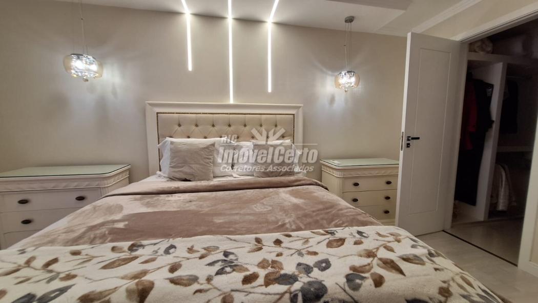 No piso superior, a área íntima conta com 3 dormitórios bem iluminados e arejados, sendo uma suíte com closet amplo e banheiro espaçoso, realçados por um projeto luminotécnico aconchegante em LED.
