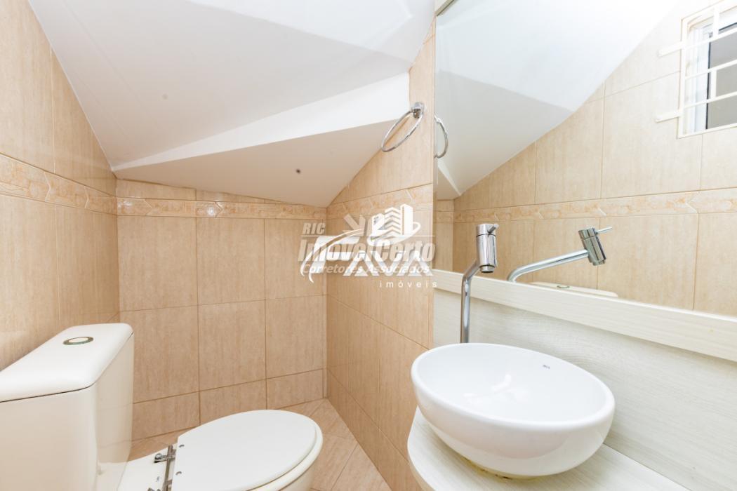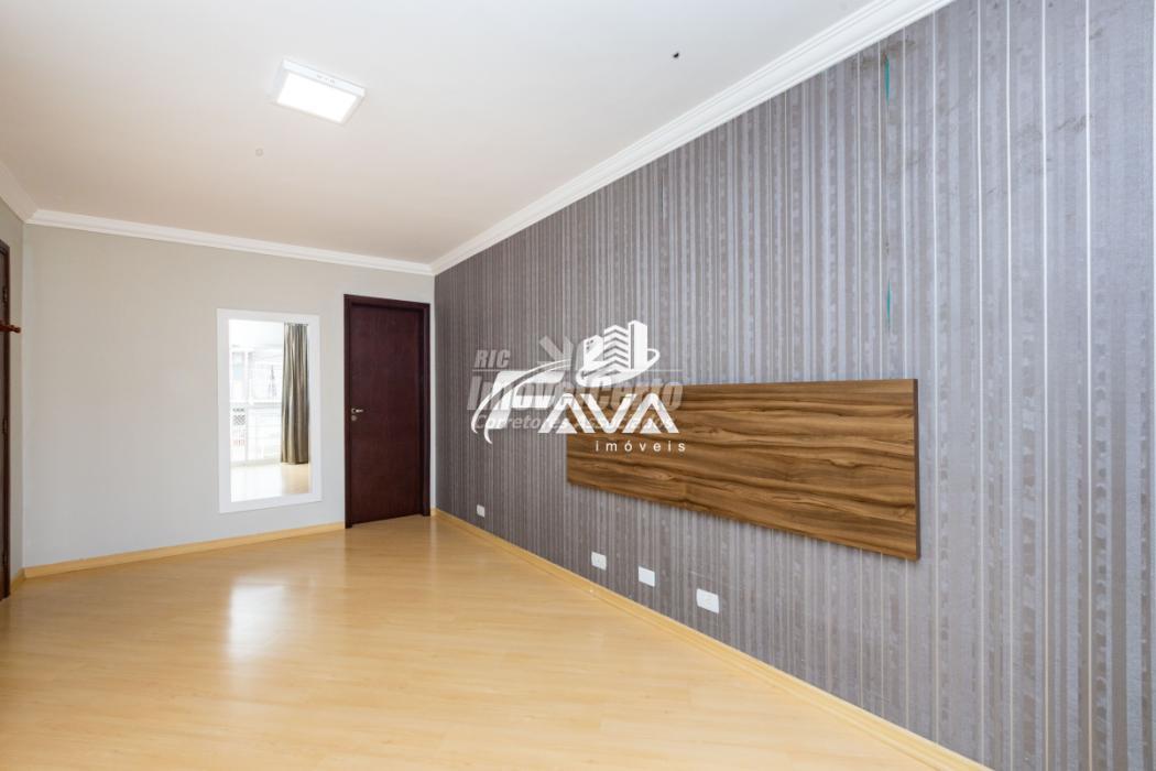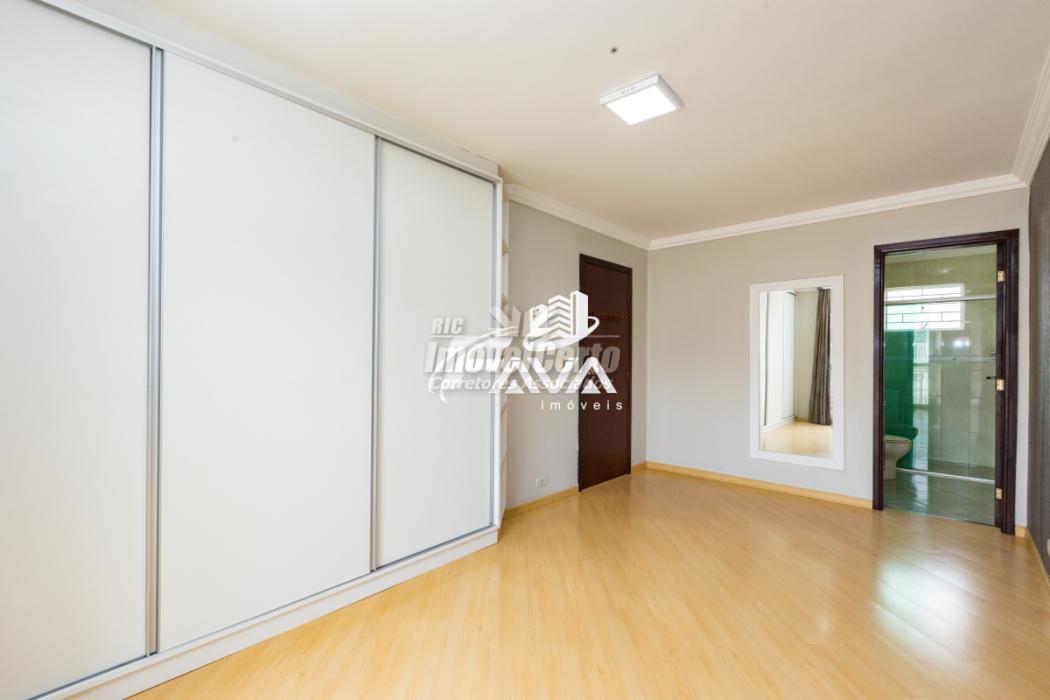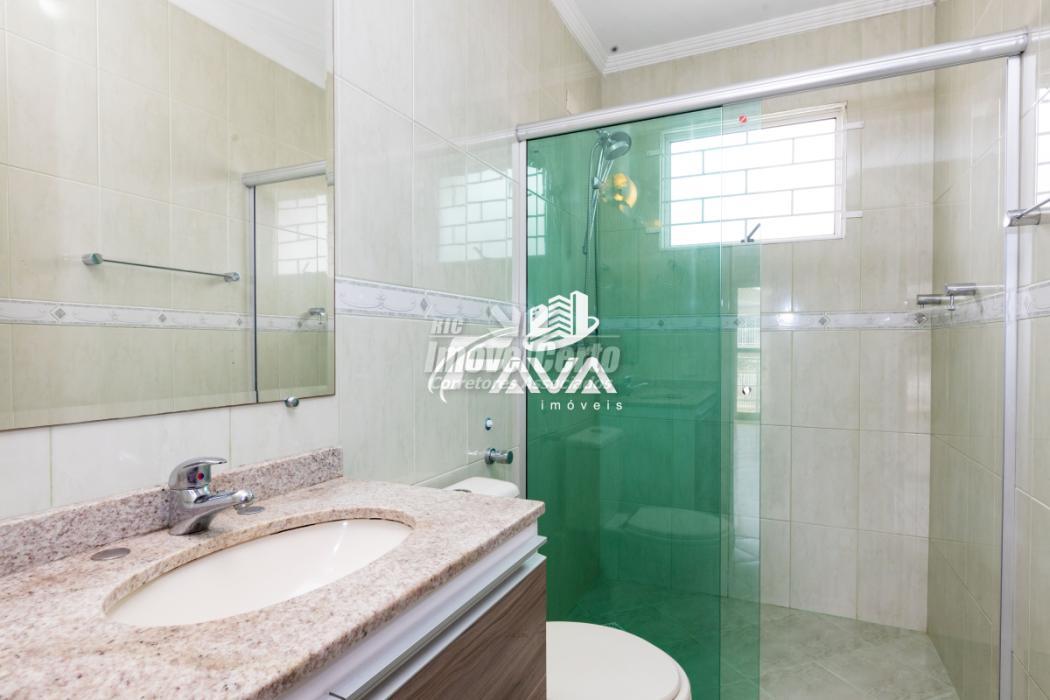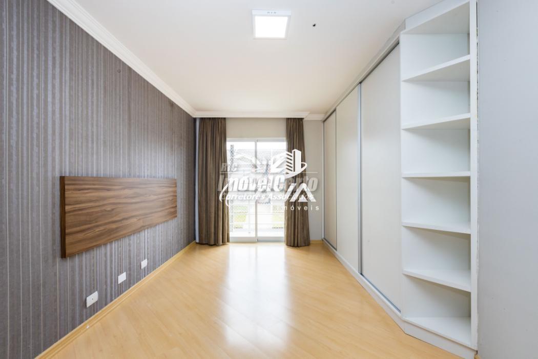 Piso superior: Três quartos, sendo uma suíte, com piso laminado, banheiro social. Um quarto com armário planejado, segundo quarto com painel para tv e cabeceira de camas, suíte com armário planejado, papel de parede, cortina, sacada com vista para a rua. Chuveiro com aquecimento à gás. Banheiros com box blindex e armários planejados.