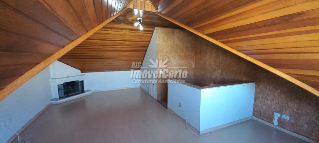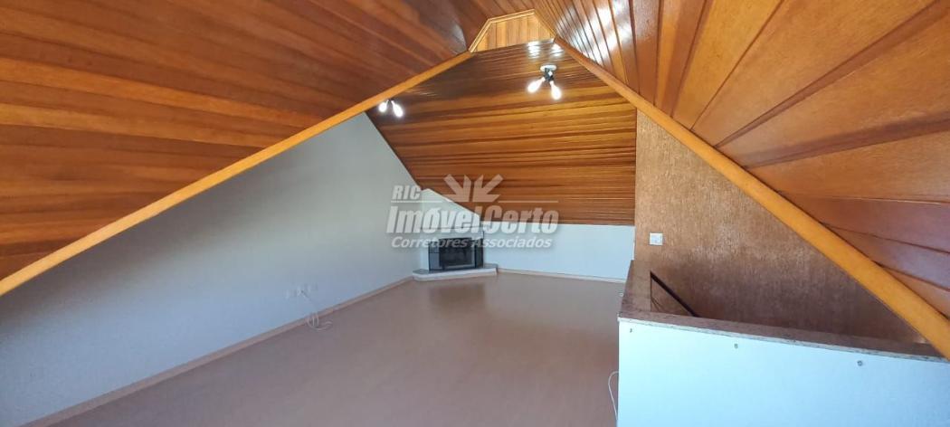 Ático amplo para 2 ambientes, com lareira e piso laminado;