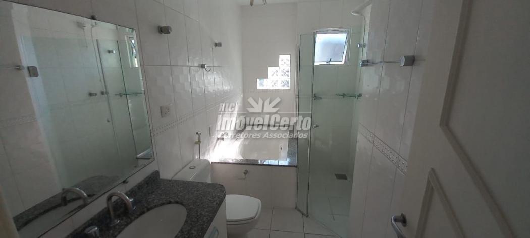 3 quartos com piso laminado e armários, sendo 01 suíte, com hidro, box, gabinete com tampo em granito e sacada;